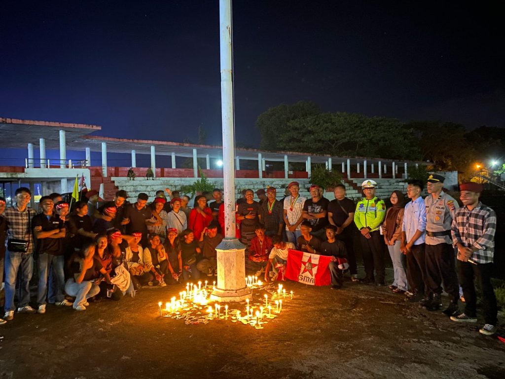 ENDE, NTT – Puluhan nyala lilin membentuk lingkaran di bawah tiang bendera Lapangan Pancasila Jalan Soekarno Kelurahan Kota Raja Kecamatan Ende Utara Selasa malam (31/3/2026). Suasana khidmat nan haru ini merupakan puncak dari Aksi 1000 Lilin yang digelar oleh Perhimpunan Mahasiswa Katolik Republik Indonesia (PMKRI) Cabang Ende sebagai bentuk solidaritas atas tragedi kemanusiaan yang menimpa almarhum Yohanes Edintus Bido.