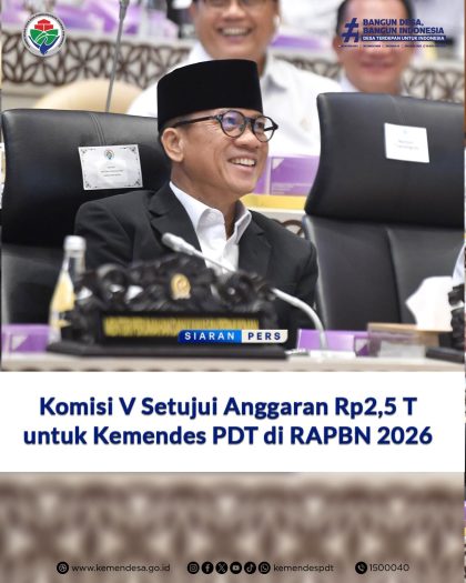 Branding Inspirasi Branding Inspirasi ANGGARAN RP2,5 T UNTUK KEMENDES PDT DI RAPBN 2026 September 16, 2025 • Dok. Kemendes PDT JAKARTA – Komisi V Dewan Perwakilan Rakyat Republik Indonesia (DPR RI) menyetujui...
