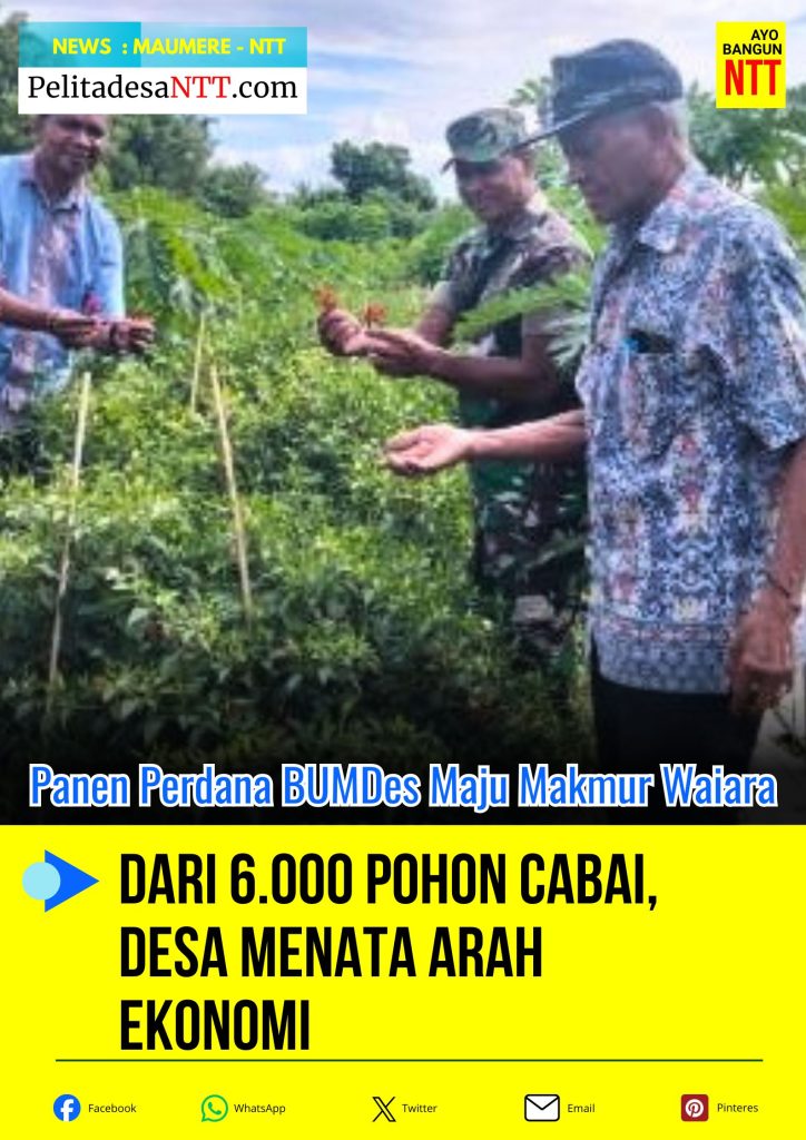 MAUMERE, NTT – Lahan di samping Kantor Desa Waiara, Kecamatan Kewapante, yang selama ini sunyi, pagi itu berubah menjadi pusat aktivitas. Barisan tanaman cabai rawit tampak dipetik satu per satu. Panen perdana dimulai menandai fase baru bagi Badan Usaha Milik Desa (BUMDes) Maju Makmur.
